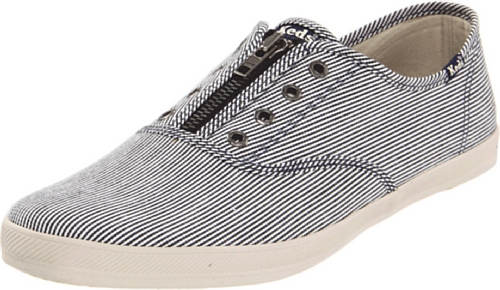 Bring an effortless style to your wardrobe when you easily step into the classic and timeless Champion CVO Zip sneakers from Keds. These laceless shoes feature a striped twill upper with a front zip made for easy on/off access, and finished with a smooth round toe. The removable cushioned sock liner provides a breathable interior, while the flexible rubber outsole is durable and offers excellent traction.